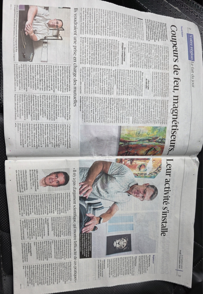Je tiens à remercier le Dauphiné Libéré pour cet article intitulé « Coupeurs de feu, magnétiseurs... leur activité s'installe », paru ce jour. ​J'apprécie la qualité de ce reportage qui a su aborder ce sujet complexe avec un grand professionnalisme et une approche équilibrée, en présentant à la fois les témoignages de praticiens du Nord-Isère dont je fais partie et l'avis du corps médical. Nous espérons être reconnu par les mutuelles pour une future prise en charge. Il est rare de voir ce sujet abordé sans préjugés, et cet article a réussi à présenter de manière objective les différents points de vue, offrant ainsi une information complète et respectueuse de chacun. C'est une démarche très appréciable, grâce à vous, médias et réseaux, vous contribuez à l'ouverture d'esprit sur nos pratiques